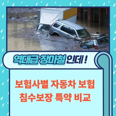 현대에는 기후변화로 인해 우리나라는 장마철은 물론이지만 갑작스러운 폭우로 인한 자동차 침수의 경우가 심심치 않게 발생하곤 합니다. 이를 대비해 자동차 보험 침수보장 특약을 고려할 때 보험사별 비교가 필수적입니다.